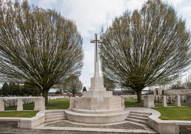 Thomas McLaughlin from Coleraine had served served 6 years in RNVR. He re-enlisted on 17/09/1914 and served as a Chief Petty Officer in the Royal Naval Brigade which was basically a formation of sailors serving in an infantry role. He was killed in action, at Achi Baba, Gallipoli Peninsula, Turkey, on this day in 1915. He is named on the Helles Memorial, Turkey and on Coleraine WM. William McVeigh from Cookstown was serving as a Lieutenant in the Royal Munster Fusiliers. He was wounded three times in France before being re-deployed. He died in 1917 and his remains rest in Jerusalem War Cemetery. Two crew members of HM Tug St Issey, Alex Brady from Belfast and Samuel Morton from Bushmills, died 28/12/1942 off Bengazi. On the same day three members of the Royal Irish Fusiliers. 1st Btn. fell during the Faughs’ operations around Goubellat in Tunisia. John Rainey from Omagh serving with the Royal Corps of Signals died near Antwerp in 1944. Veterans today include Cecil “Bunny” Austin, WW2 RAF Battle of Britain pilot from Londonderry and father of local radio personality Wendy Austin; and Robert Barr from Coleraine, a Royal Marine gunner who took part in the Battle of Jutland in WW1. Photo – Tournai Communal Cemetery is located in Belgium. The Cemetery is located in the south-west district of Tournai and contains 873 burials.