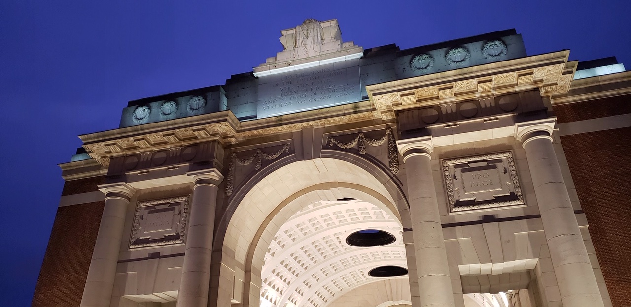 Photo – Menin Gate at night. Thomas Espey was a Railway Clerk in Cookstown before emigrating to South Africa. He enlisted in 1915 in the South African Infantry. He was one of the 143 survivors who left Delville Wood on 20/07/1916. He died this day in 1918. He is named on the Cookstown WM and in the parish church. In 1943 David McAuley from Ballygally died in RAF pilot training in Canada. His older brother Pilot Officer George McAuley, DFC, had been killed having been shot down on 20/08/1942. Leading Aircraftman David Stoddart, of Belfast, also died in 1943. He is named on the Alamein Memorial, Egypt. George Hempenstall of Portstewart completed 13 years of Royal Navy service on this day in 1921. He saw war service in Dido, Pembroke, Antwerp, Baralong, Alexandria, and Indomitable. Robert Playfair from Woodvale, Belfast, served in the Royal Navy in both world wars. He was in HMS Tiger at Jutland. He is named in Woodvale Presbyterian Church’s RH. Wulverghem Military Cemetery is featured. Get today’s report here –