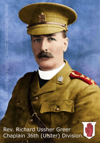 James Braithwaite a Company Serjeant Major from Lisburn and John Carruthers a private with links to Ballycastle who fell in 1916 are listed on the Basra Memorial in Iraq. The CSM may have died on a death march of prisoners of war. In 1917 two Ballymena men, William Blair and George McMullan, fell serving with the Royal Irish Rifles. Ian Munce from Holywood died serving with the RAF in 1945. He is remembered on memorials at QUB, Sullivan Upper School, Methodist College and Holywood. Today’s Veterans include Bill Brown, a WW2 navy flier who later designed the well-known Ruffian sailing boat in Portaferry and Harry Hamilton, a WW1 DCM holder, who was Chairman of the White House, Portrush. US born Teddy Dixon grew up in east Belfast and took part in the liberation of Dachau which he described as ‘going into hell’. Photo – Revd. Richard Greer of Banbridge was one of two new chaplains to serve with the Ulster Division. Click below for today’s newsletter –