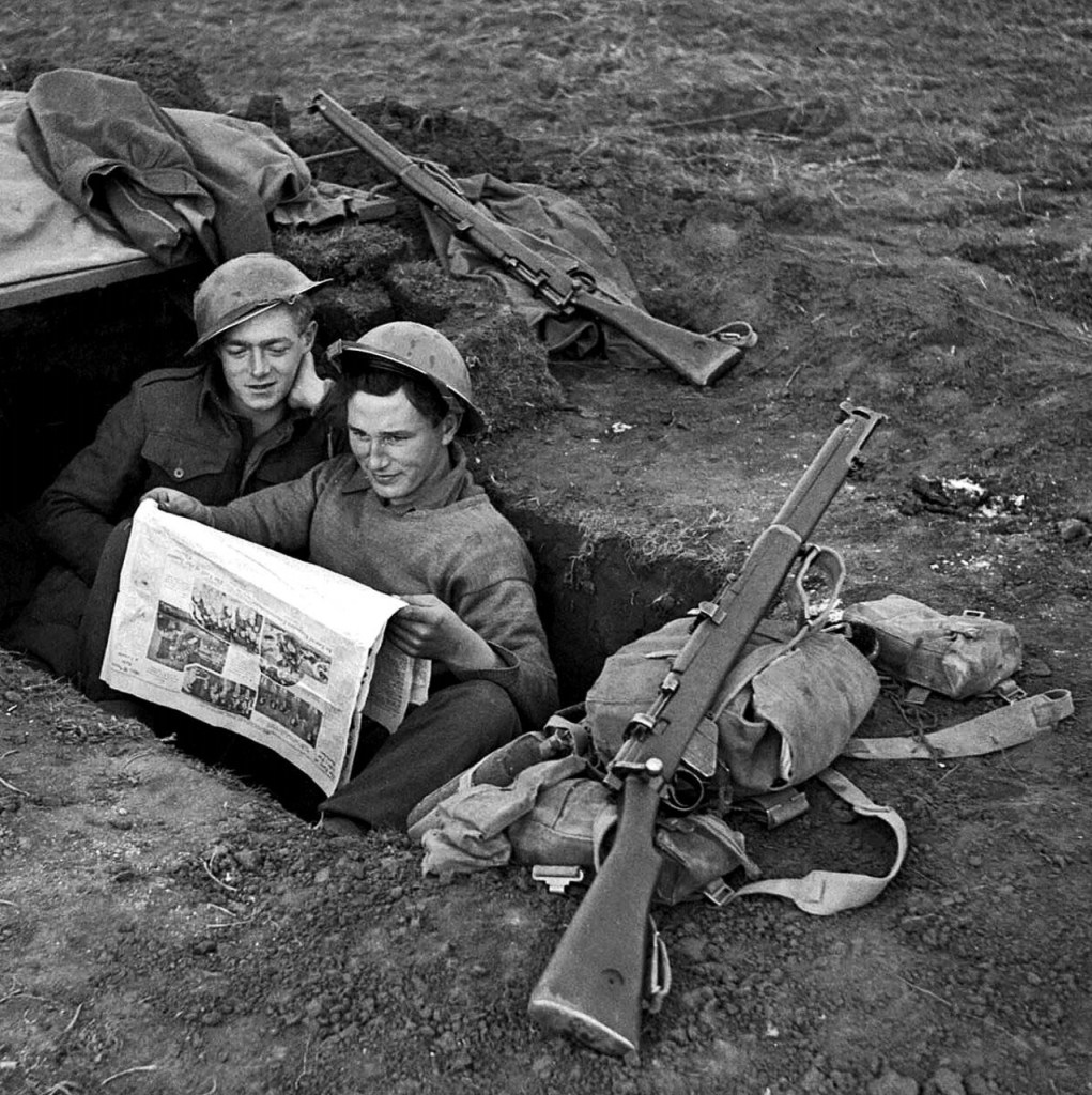 Photo – In 1944. Anzio area, Italy. Men from 2 Royal Inniskilling Fusiliers reading the sports newspaper “Ireland’s Saturday Night”. In today’s Roll of Honour – Samuel Gray from Coleraine died serving with Highland Light Infantry in 1915. A medical student, John Bill, son of Qua Iboe missionaries, fell in 1917 serving with Royal Irish Rifles during the Battle of Langemarck (Third Ypres). He is remembered at Tyne Cot, QUB and RBAI. Twenty year old Seaman John Gordon who died in 1943 is remembered on Ballymoney War Memorial. Today’s veterans are William Richmond of the North Irish Horse who survived WW1. Six sons of the McAtamney family of Carrickfergus served in WW2. Bobby, a Petty Officer, survived the First Battle of Narvik in 1940 when his ship was sunk. Click below for today’s newsletter –