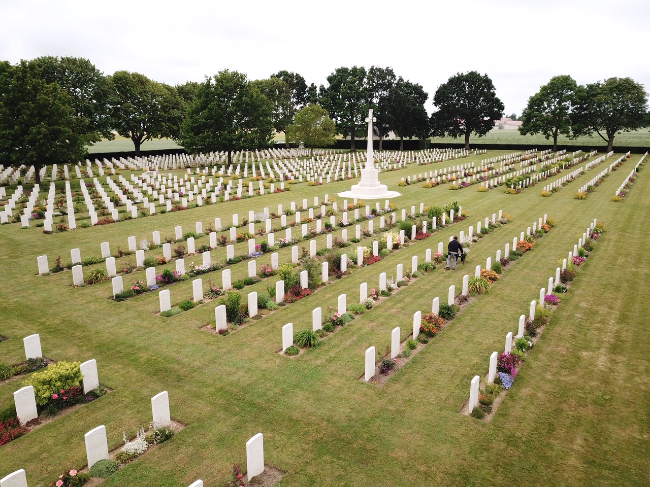 Strabane man Herbert Cooper, a Lance Corporal in Portora’s OTC, joined the RAF. You can read his amazing story in today’s report here. Joseph Donnelly from Castledawson and Belfast died while serving with the RNAS Armoured Car Division in Turkey in 1916. Three infanteers died in 1917; casualties of the Battle for Messines. 1944 entries in the Roll reflect the post D Day conflict. Nathaniel Morrow was one of two Belfast brothers serving with 2 RUR. Harold Wright from Dromore was serving in the RAF Regiment. Inniskilling Fusiliers Patrick Matthews from Tandragee and Percy Saunderson from Enniskillen are remembered at the Kohima War Cemetery, India. Photo – Bretteville-sur-Laize Canadian War Cemetery. For today’s full report click on –