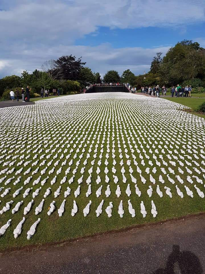 Nine of the 36th Division were awarded the Victoria Cross. Today’s Roll of Honour reflects Gallipoli and the Somme in WW1, Normandy and North Africa in WW2. George Collins a Royal Marine from Belfast died at Gallipoli in 1915. 40+ names from Day 2 of the Somme include Charles Murray a member of Royal Portrush Golf Club, and former UVF officer, who died of wounds. His father was at Mafeking in Boer War. James Hayes of Burnside, Portstewart, also died at Somme. A brother would die later in the war. Sheriff Kennedy, RAF WW2, also of Portstewart, is remembered at El Alamein and his home parish church. George Cunningham a Fleet Air Arm pilot from Belfast died in 1945 when his Fairey Barracuda dived into the Moray Firth in the course of a training exercise. In 1903 today’s veteran was born at Islandmagee. Robert Boyd commanded four different submarines in WW2 and was twice decorated. Photo – Artwork: The Shrouds of the Somme which was diplayed throughout the UK including the Cenotaph at Belfast City Hall