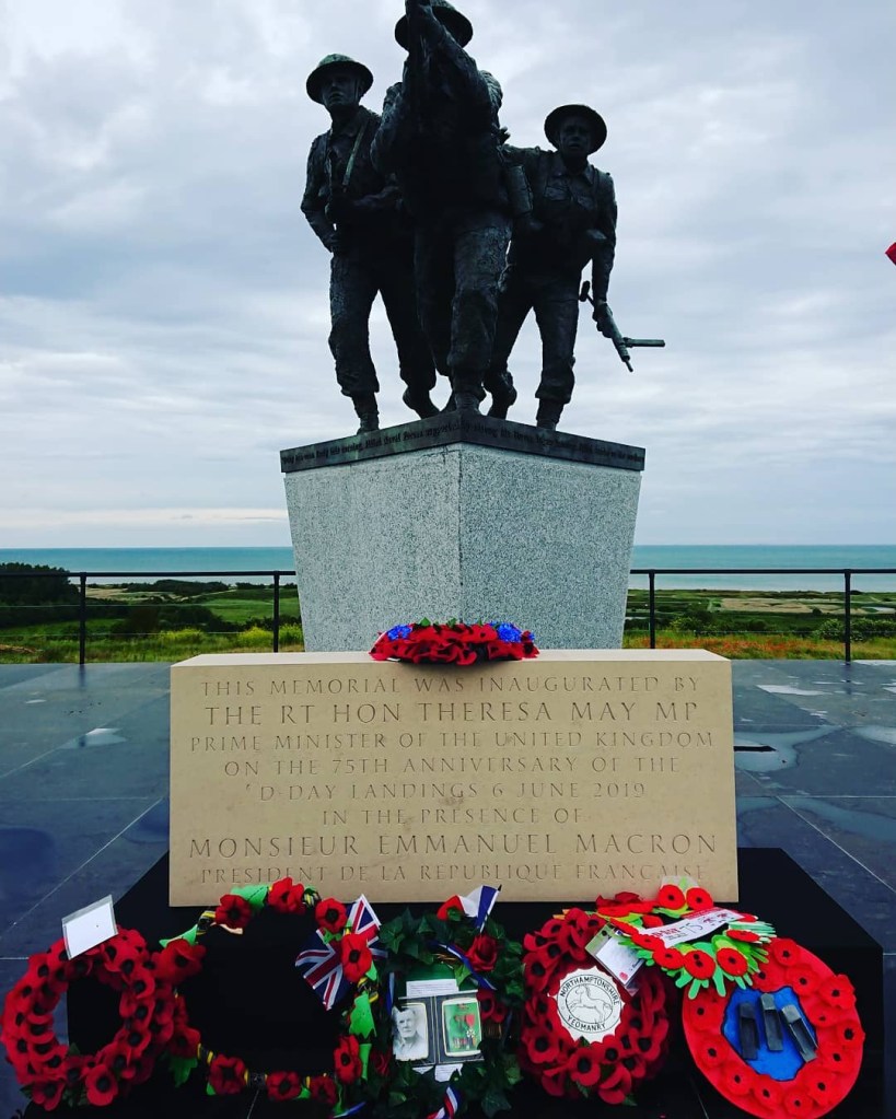 Bill Balmer served in the Royal Marines from 1939 to 1953. Born in Coleraine to the sound of Lambeg Drums, his service and that of his wife to the Ballymoney branch of the RBL were exemplary. Today’s Roll reflects the human cost of air raids over Germany in 1941 and the battle for Normandy in 1944.1916 entries in today’s Roll continue to reflect the cost on the Somme. Nine are from the Royal Irish Rifles. Seven of them have no known grave and are remembered on Thiepval and Ypres memorials. William Glass from Clogher fell with Canadian infantry. He was one of many NI men who served with the forces of their new country in the empire. In 1942 Neville King, former Rockport student, died flying a Supermarine Spitfire aircraft in pursuit of a German Junkers Ju 88 aircraft over Malta. Bernard McCormick from Coleraine died serving with the South Staffordshire Regiment in the invasion of Normandy. Two officers in the regiment whose wives were from NI also died on the same day. Photo – Memorial marking the 75th anniversary of D Day, unveiled by UK Prime Minister Rt Hon Theresa May MP in the presence of President Macron of France. For today’s full report click here –