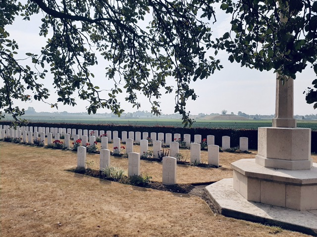 The five entries in today’s Roll for 1915 are of casualties in Gallipoli. Included in the entry of Inniskilling Fusilier Robert Nelis from Londonderry is an excerpt from Sir Frank Fox’s book describing the actions of the 1st Battalion on this day. Kilrea born Stewart Faulkner worked at Clarks of Upperlands before he emigrated to Australia. He died in 1916 serving with Australian Infantry. HMS Prize was a Q ship – a spy ship whose Captain had been awarded the Victoria Cross. She was sunk by a U Boat this day in 1917. George Jarrett, a Petty Officer from Ballintoy had been twice decorated for his service which began as a Boy Sailor in 1902. Alexander Williamson’s family roots were in Portstewart and he is named on the town’s War Memorial. Cecil Montgomery from Fivemiletown died intercepting a Luftwaffe raid over Dover in 1940. He is named on Fivemiletown WM and 502 (Ulster) Squadron WM, St Anne’s Cathedral, Belfast. Photo – “Between the crosses, row on row” Track X Cemetery, Ypres.