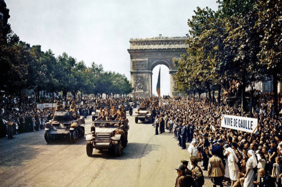 In 1914 a QUB Lecturer in Archaeology and Ancient History was killed on the second day of the Battle of Mons. Kingdom Fross fought so courageously the Germans buried him with military honours. In 1917 Fivemiltown-born William Walker died at the St John’s Ambulance Brigade Hospital in Etaples, France, as a result of gunshot wounds to his shoulder and spine. He was serving with Canadian forces. Harold McCrea, son of the Presbyterian minister in Bellaghy, served with Australian forces and died in 1923 having been discharged in 1918 medically unfit due to injuries. Petty Officer Samuel Patterson from the Shankill Road, Belfast, served as a Torpedo Gunner’s Mate. He was awarded the DSM for “undaunted courage, skill, and devotion to duty in successful patrols in HM Submarines”. Three RAF men were lost this day in 1942. Leslie Craig from Strabane died when his Wellington bomber for unknown reasons crashed near Namur in Belgium. John McCleary from Dungannon died over north Germany and Mervyn McCrae from Clogher died off Malta. Sub-Lieutenant Edward Thornberry died in 1944 flying a Vought F4U-1A Corsair from HMS Formidable during the attack on the battleship Tirpitz when he was shot down and killed over Alten Fjord. He is remembered at QUB and Bessbrook War Memorials. Photo – On this day in 1944 Allied forces liberated Paris after four years of German occupation.