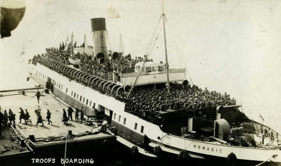 The Battle of Le Cateau took place on August 26th, 1914. A Derryman Drummer Kydd, of the 2nd Battalion Royal Inniskilling Fusiliers who was only a lad of 16 handed his drum over to a Frenchwoman at Le Cateau. She hid the drum and later gave it to a Canadian Regiment who returned it to the Inniskillings battalion. In 1924 when the 2nd Battalion was disbanded the drum was handed over to the Museum of the Royal United Services Institution at Whitehall. Today’s Veterans Roll includes an account of Royal Ulster Rifleman Richard Keegan’s service on D Day and the days following. Today is the anniversary of his death in 2013. On this day in 1945 one of the greatest international armadas ever assembled, enters the Bay of Sagami, Tokyo, and B-29 Superfortress bombers begin to drop supplies into Allied prisoner of war camps in China. Photo – The SS Nomadic is now one of Belfast’s most important tourist attractions, but this photograph shows her in a very different role – being used as a troop ship in June 1940 during the evacuation of Cherbourg.