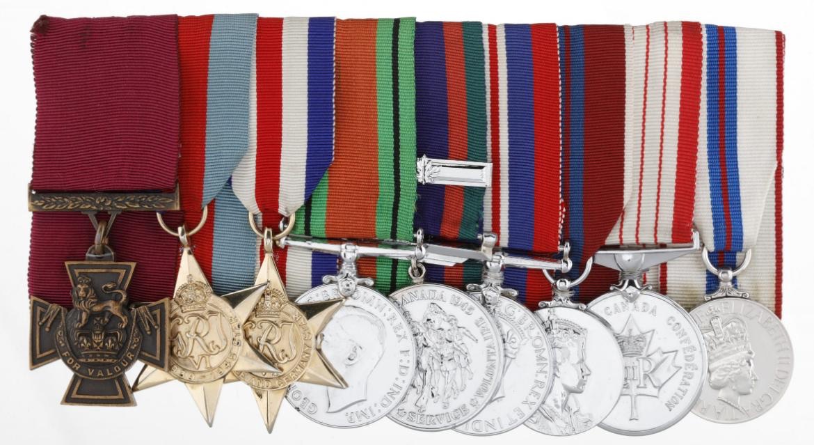 Robert Whelan a Company Sergeant Major with the Royal Irish Rifles was awarded both the Military Medal and the Military Cross. The citation on the awarding of the Military Cross reveals a man of great bravery. He fell in 1917 aged 25. He is named on the War Memorial of St Jude’s C of I Church, Belfast. William Davey, a law graduate of QUB who served as a major in the Northumberland Fusiliers stood in the General Election of December 1918 as a pro – Home Rule candidate for the Irish Parliamentary Party in the Duncairn constituency in Belfast. The seat was won by the Irish Unionist, Sir Edward Henry Carson. Sam Picken a Randalstown doctor was born this day in 1890. In WW1 he was awarded the Military Medal for “Conspicuous gallantry and devotion to duty in going forward under heavy shell fire”. In 1935 following a heart attack, he drowned at Castlerock. Armagh born Lt. Colonel Colin Angliker after his WW1 service spent many years as a forensic psychiatrist at Southwestern Virginia Mental Health Institute and served in the Presbyterian Church, Wytheville. RAF Sergeant Thomas Dick from Carrickfergus died in a raid on Stettin, Poland in 1944. On the same night Charles Murray died on the same mission. 402 Lancaster Bombers took part in this raid of which 23 were lost. One of today’s veterans Air Commodore James “Paddy” Forsythe started flying with Queen’s University’s Air Squadron. Photo – David V. Currie, a Canadian, was awarded the Victoria Cross (Medal LHS) for his actions during the 36-hour battle at Saint-Lambert-sur-Dives, in 1944 in Normandy.