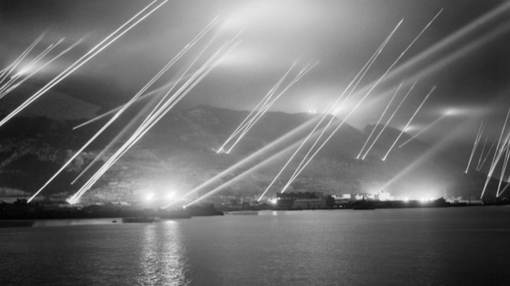 In 1918 Lieutenant Robert Russell from Whitehead died serving with the Dunsterforce Expedition in Mesopotamia. Dunsterforce had developed from the Royal Naval Armoured Car Division which had served in Russia and was deployed to safeguard the oilwells of Baku from the Turks. He is remembered on the Baku Memorial, Azerbaijan. That same day, Ballyclare man Sam McGuigan was wounded serving with the Royal Montreal, Quebec Regiment in France. He was sent home from France to rest but he died from his wounds. His funeral was to Ballyclare cemetery. In 1943 Samuel Gordon, a Navigator/Radar Operator from Finaghy, died serving in a Royal New Zealand Air Force squadron. His remains rest in St Mark’s C of I Churchyard, Armagh. On the same day Cecil MacAuley, ex Coleraine Inst and Larne Rugby Club, was lost on a night-time raid over Berlin, Germany. Today’s veterans include Sir John Campbell, an outstanding medical professional from Queen’s University, who was the Senior Surgeon at No 5 British Red Cross Hospital, Wimereux, France, which was one of the largest hospitals in the conflict. Photo – Anti-aircraft searchlights at Gibraltar WW2.