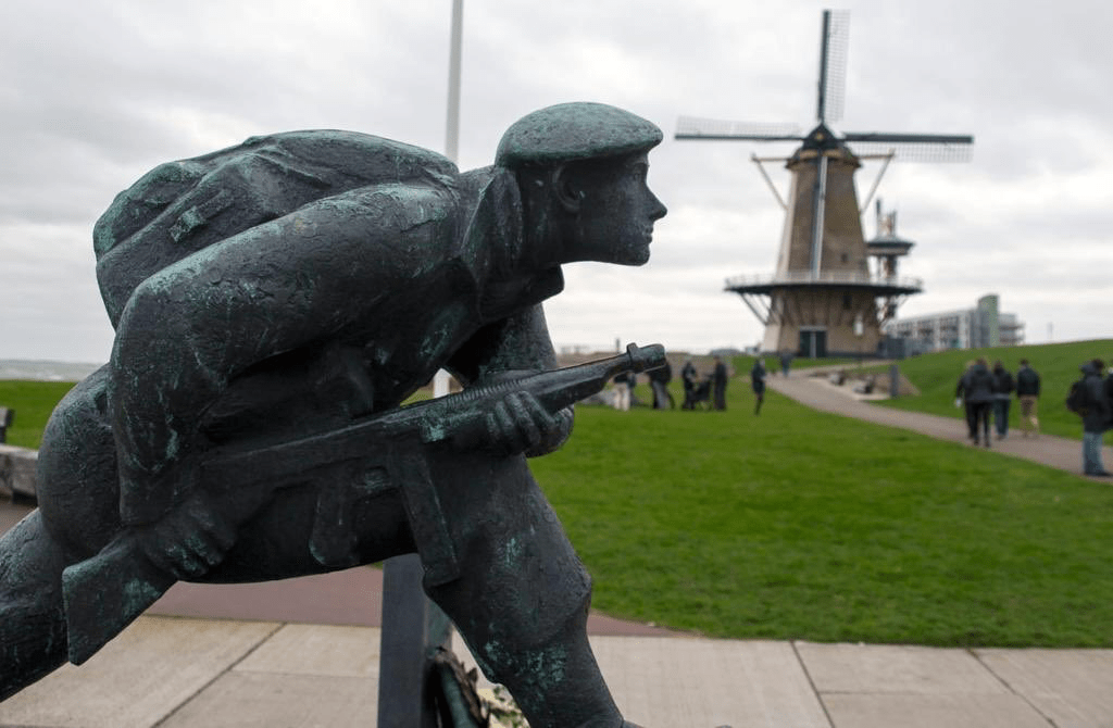 Two NI men serving with Canadian forces died this day in 1917. James Blackwood was in the medical corps and Crumlin-born William Yarr enlisted in Alberta. He is named on the war memorial of St Catherine’s C of I, Killead.In 1940 JK Haire, an RAFVR pilot from Belfast, died saving a village school. He is named on the RAF Fighter Memorial, Battle of Britain Memorial, Capel-le-Ferne, near Dover and on RBAI WM. In 1944 two RAFVR aircrew on a mission to Gravenhorst were lost in different planes and are remembered at Reichswald Forest War Cemetery, Nordrhein-Westfalen, Germany. A veteran, John Piggott, served in RN 1901 – 1927. Born in Limavady he lived in Coleraine. Photo – Memorial of the liberation of Walcheren, in the Netherlands in 1944 which involved 4 Special Service Brigade – 41, 47 and 48 Commando – ferried in by the Royal Navy. They were part of a daring assault against multiple, heavily defended batteries.