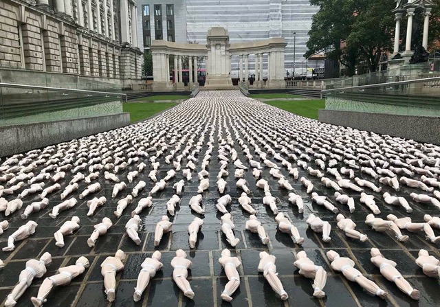 The sixteen WW1 men remembered today rest in Egypt, Belgium, Greece and England. Five RAF crew reflect the demands made in WW2 carrying the war to the foe. They include Sam Allen from Ballymena, who died as a POW of the Japanese, and Isaac Kennedy from Ahoghill, lost over Hamburg. The entry for Dublin-born Aircraftswoman Joy Coleman is a reminder of the deadly presence of TB in WW2. Our veteran today is Bill Epstein of the Belfast Jewish community who served in the Royal Navy in WW2. Post-war he became an academic of international stature. Photo – The grounds of Belfast City Hall leading to the Cenotaph when an art work of shrouded figures reflected the number in 36 (Ulster) Division and other Irish formations who have no known grave.
