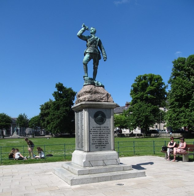 In today’s Roll read James McKinstry’s letter to his mother before he moved into the trenches. The 21 year old from Belfast was in the front line near Beaumont Hamel when he was fatally wounded in 1916. Read also the commendation by the commanding officer and Brigadier for the instant award of a Military Medal to Corporal Stanley Hughes for his courage and leadership behind enemy lines in Italy. Fus. John Toland received a gallantry award. In his case this was a Soviet award, the Medal for Distinguished Battle Service. His family believed this to be the Russian equivalent of the Victoria Cross when they offered his medals to the Ulster Museum over 30 years ago. James Carlisle from HMS Caroline was notified as missing within days of his daughter’s third birthday in 1942. Walter Sergant from Rostrevor was shot down in 1943. His remains rest alongside other men from his Lancaster crew in Charlottenburg cemetery, Berlin. Photo – Boer War Memorial to Royal Irish Fusiliers, Armagh.